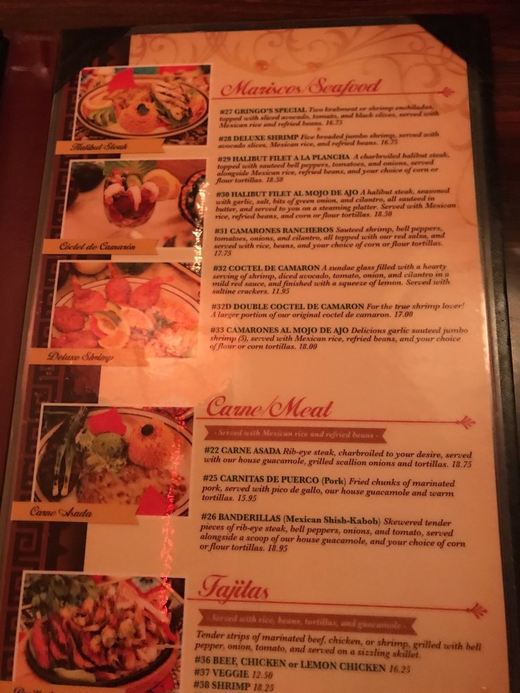 A halibut steak, seasoned with garlic, salt, bits of green onion, and cilantro, all sauteed in butter, and served to you on a steaming platter. Served with Mexican rice, refried beans, and corn or flour tortillas.